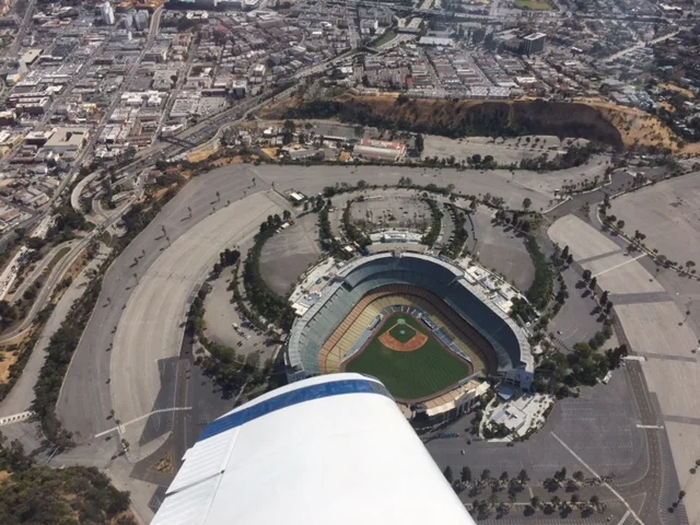 Flying over Dodger Stadium...
