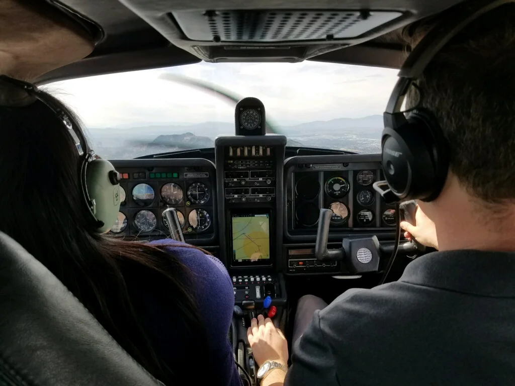It was a beautiful day, clear day. As we were flying towards downtown, the instructor let me take over the controls and steer the plane. It was a little freaky. We could see the Hollywood sign from the air, and Manhattan Beach all the way down to Palos Verdes. After a 45 minute flight, our pilot instructor (also named Mike) landed us safe and sound back at the Torrance airport. Phew!