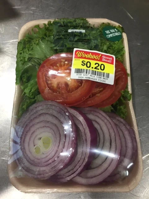 Hamburger fixin's, already pre-cut, on the day you decide to fire up the grill - for 20 cents? Thank you, Ralphs grocery store!