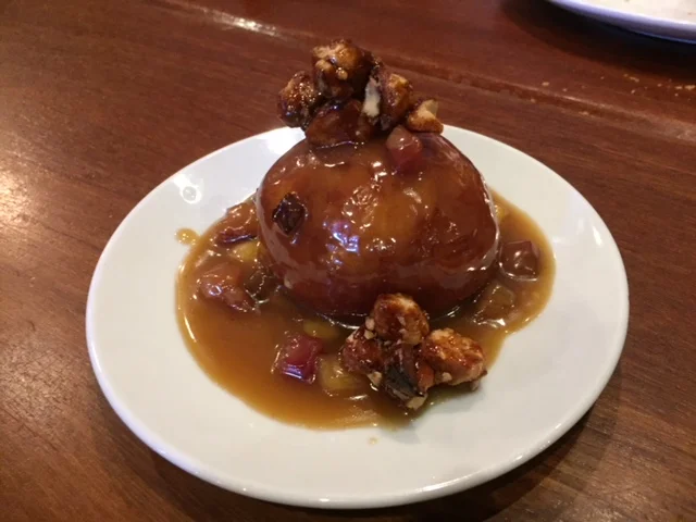 Sticky Bomb at Republique, a warm, cream-filled brioche bomboloni, pineapple, bacon, coconut, macadamia nuts.