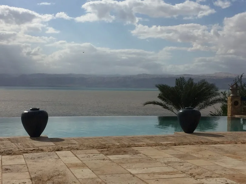 The next day, I had the mandatory mud and salt scrub treatment from the hotel’s spa. This view was from the pool; you can see Israel on the other side.